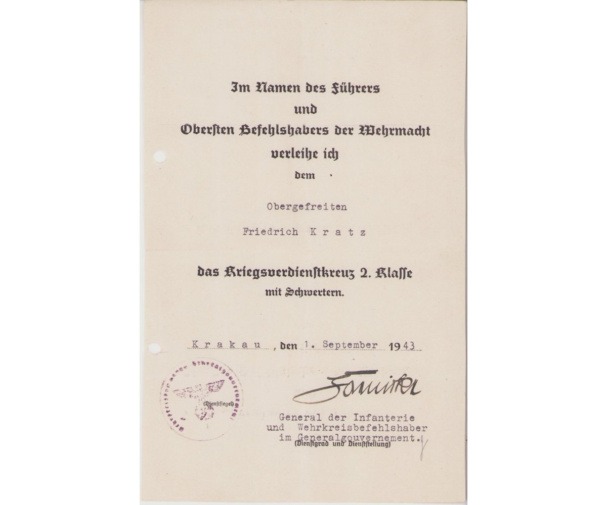 Nice Kriegsverdienstkreuz 2.Klasse award document in used condition.