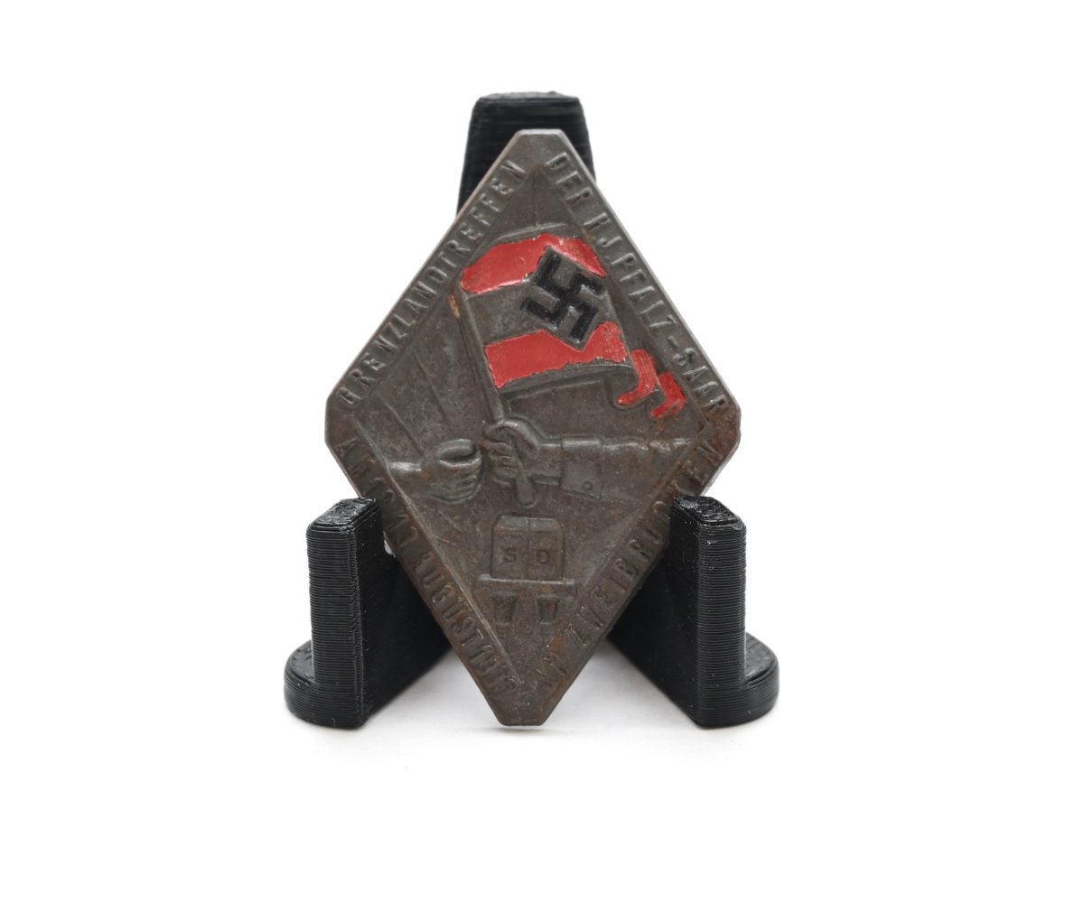 Very nice and hard to find'Grenzlandtreffen der HJ Pfalz-Saar in Zweibrücken am 12./13 August 1933'badge in used, but very good condition.