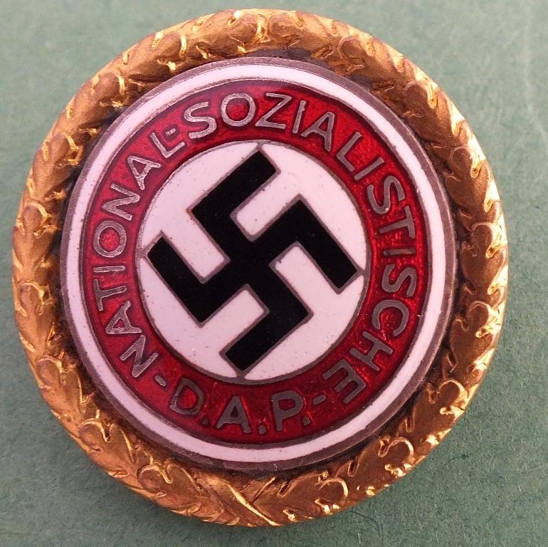LARGE GOLD PARTY BADGE VITUALLY MINT NAMED TO GAU BADGE HOLDER