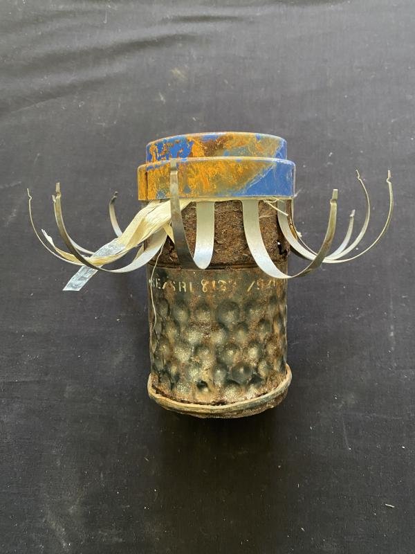This is a British HB 876 mine which is in nice condition, this was an air dropped area denial weapon. It was used as part of the JP233 runway denial system and the 'Hades' variant of the BL755 cluster bomb. As a result of the anti-personnel mine ban it was withdrawn from British Royal Air Force service (TRAINING MINE). UK sales only.