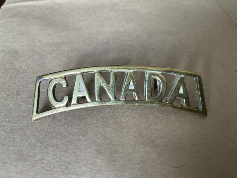 WW1 CANADA brass shoulder title , voided example