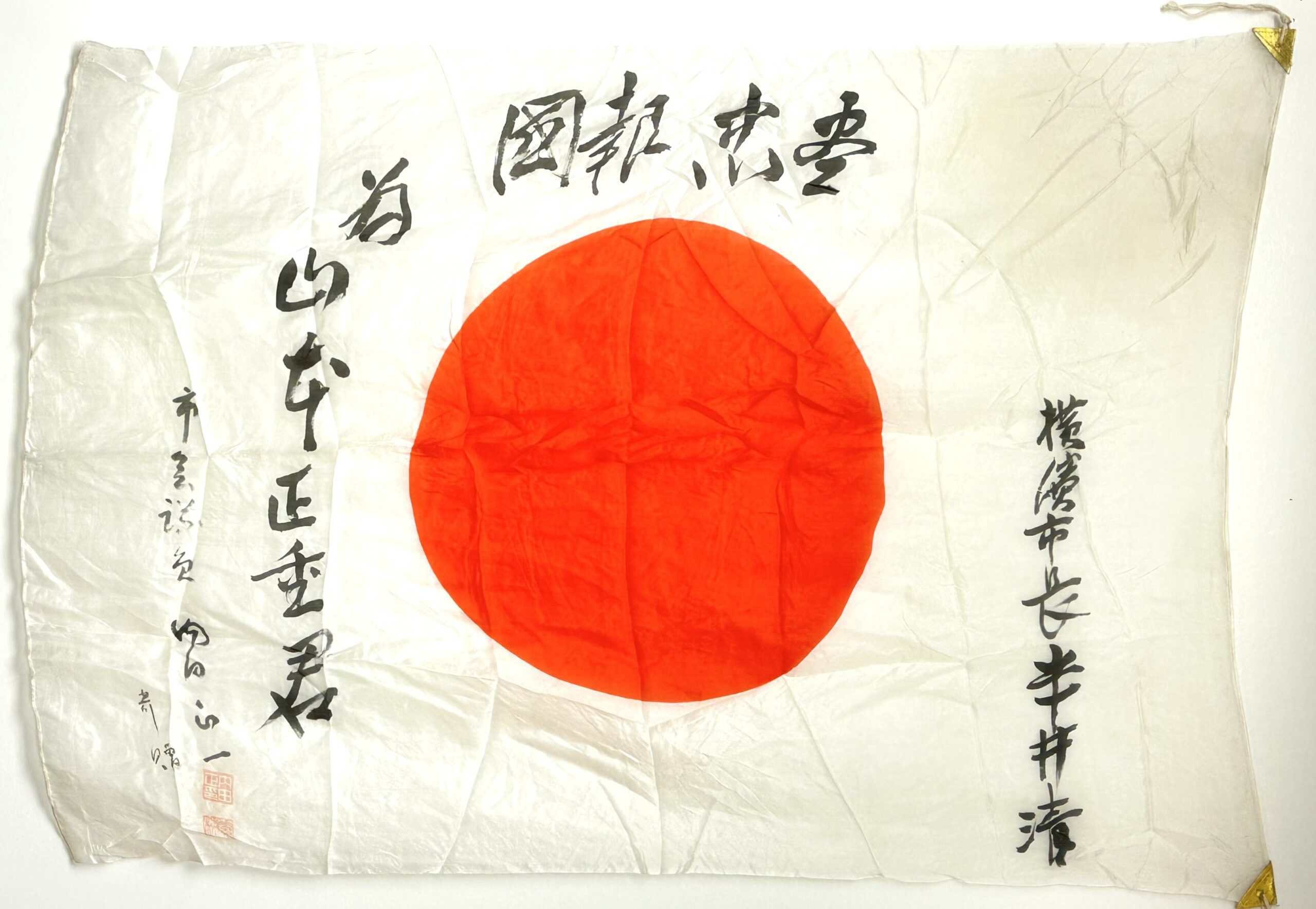 WW2 Japanese Silk Signed Banzai Flag with Shrine Stamps