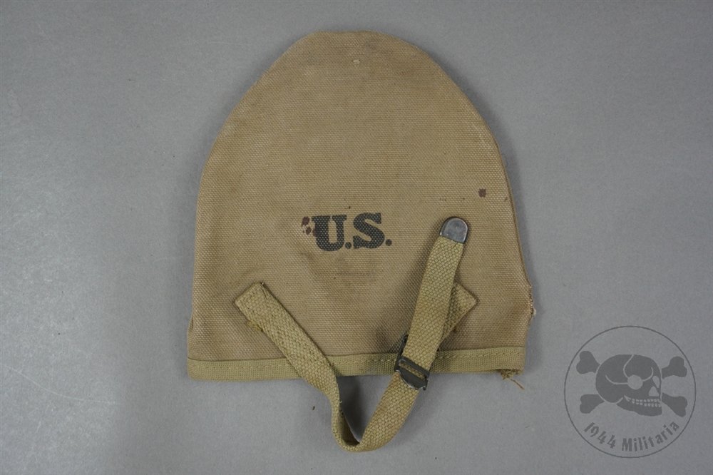 Original US WWII M1910 T-Handle Shovel Carrier--Dated 1942This authentic M1910 canvas shovel cover was designed to carry the U.S. Model 1910 entrenching tool, a T-handle shovel widely used during both World War I and World War II.The carrier shows some staining on both sides consistent with age and use. One side is clearly marked 'U.S.,' while the reverse bears the manufacturer's stamp: 'W.B. Farrell Assoc Inc 1942.' There is also another stamp that may be the soldier's serial number. A solid example of an original WWII-issued field gear item.