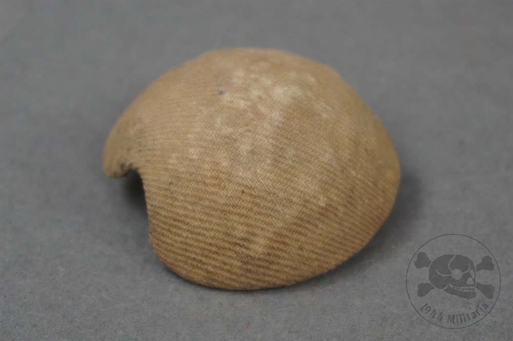 Original German WWII Pith Helmet Tan Canvas Vent CapThis authentic WWII German pith helmetcanvasvent cap exhibits minimal aging mostly on the top surface, with the original attachment screw fully intact.