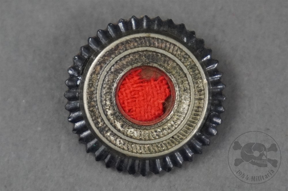 Original German WWII Heer M34 Cap Tri-Color Cockade-This authentic cockade was intended for use on the M34 field cap worn by German Army (Heer) personnel. It is constructed of silver- and black-finished aluminum, featuring a red felt core. The felt center shows damage, but the attachment prongs remain fully intact. The front does show some age and wear. It measures approximately 2.2 cm in diameter and is in overall good condition despite the wear.