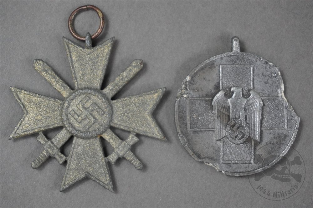 Original German WWII War Merit Cross With Social Welfare Medal Ground Dug