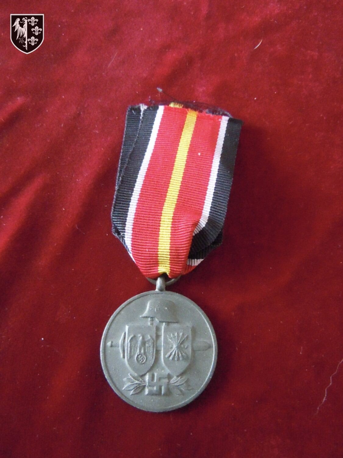 Médaille commémorative des volontaires espagnols de la division Azul dans le combat contre le bolchevisme, (en allemand,Erinnerungsmedaille für die spanischen Freiwilligen im Kampf gegen Bolschewismus). Bon état.Le ruban ajouté est une reproduction.