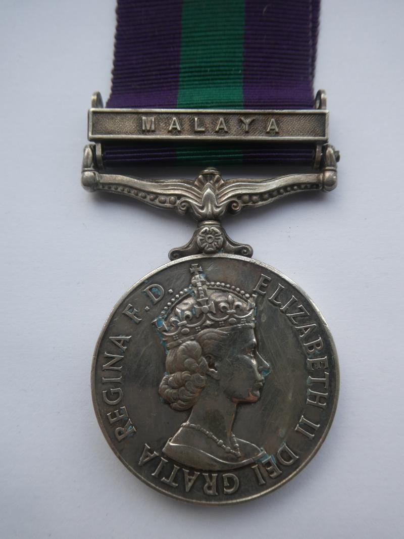 General Service Medal (QE II) clasp MALAYA, named to:23544625 PTE.A.L.JEFFERIES.3 E. ANGLIANMedal very fine or better, a couple of e/nicks and slight scratches/scuffs in front of bust.Scarce