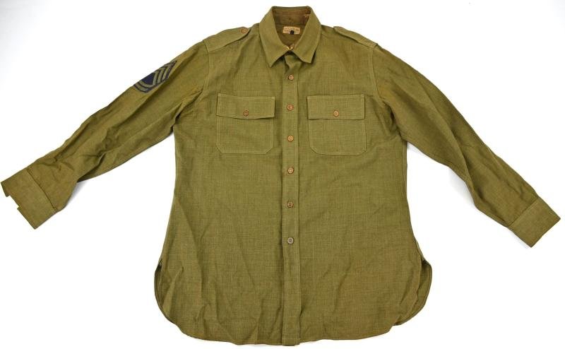 In a nice used condition a stunning US Army Air Froce WW2 Officer Shirt.The shirt comes in a very good mannequin size and has the original logo of the 3th Air Force attached.Also the rank chevrons of a sergeant are original sewed!