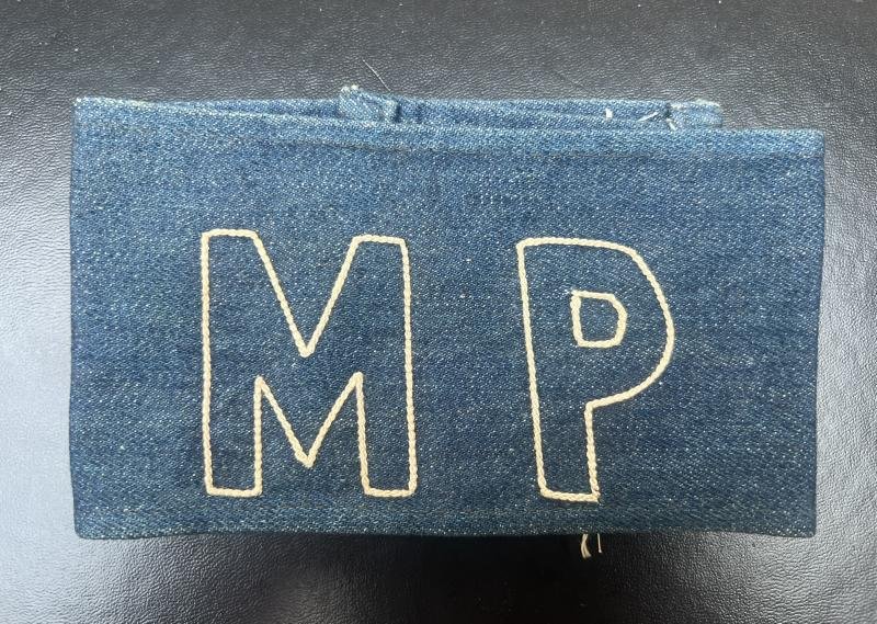 The earliest U.S. Army Military Police Brassard was comprised of the outline of the initials 'MP' in white on a blue denim brassard. Although I can find no information to confirm exactly when this particular style of MP Brassard was adopted, it was likely sometime between 1907 and 1912. will send other photos on request