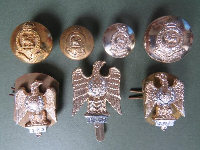 silver & gold anodised aluminium badges and buttons including pre 1953 OR's gilding button (polished 19mm) and a nice Officers gilt button (24mm). The cap badge is made by J R GAUNT B'HAM
