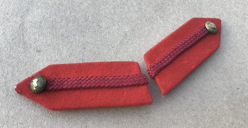 Matched pair with brass kings crown ACMF buttons. Detachable pair with spring clip reverse to each. Suit Brigadier or Colonel tunic.