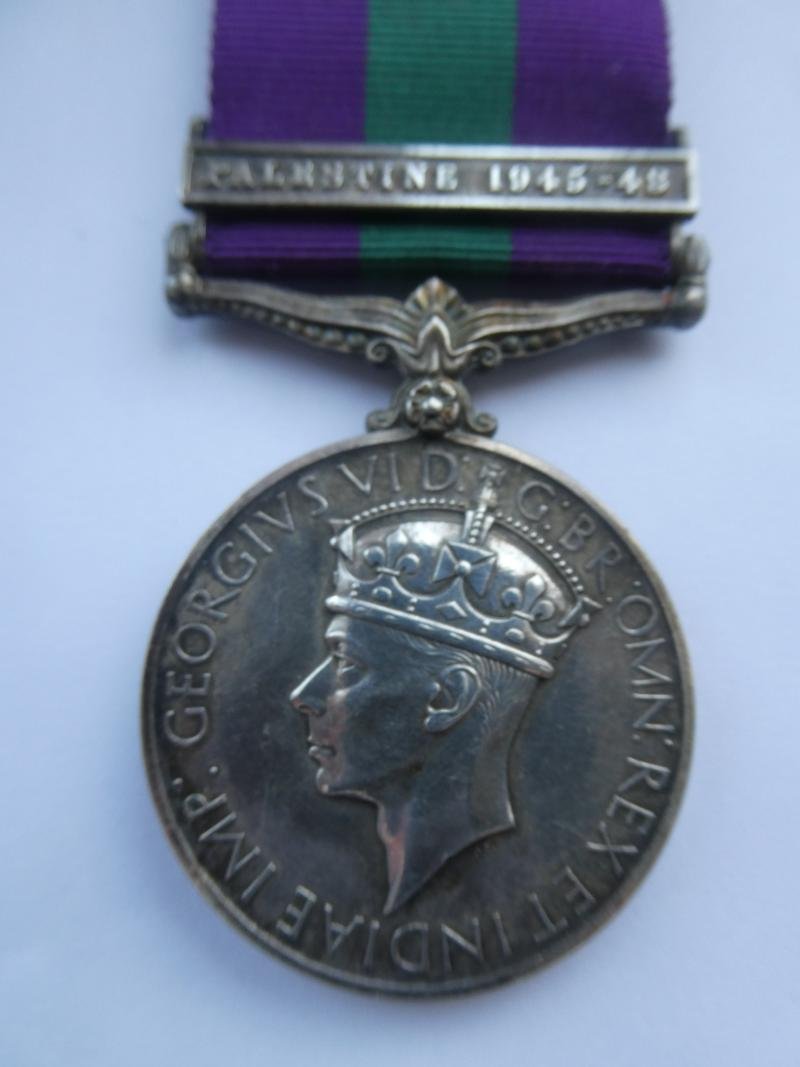 General Service Medal, clasp: PALESTINE 1945-48Named to:E.C.13739 PTE.P.DIKAPOLELO A.P.C.(African Pioneer Corps)Medal very fine or better.
