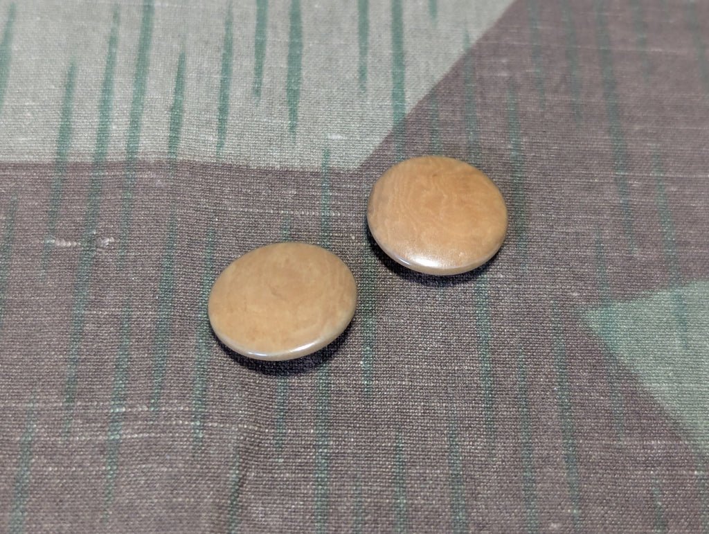 Original Gebirgsjägersteinnuss buttons, just the ticket to make your bergmutz authentic.The price is for 2 buttons. They have good color on the front but the back sometimes appears a bit stained from rubbing green fabric.