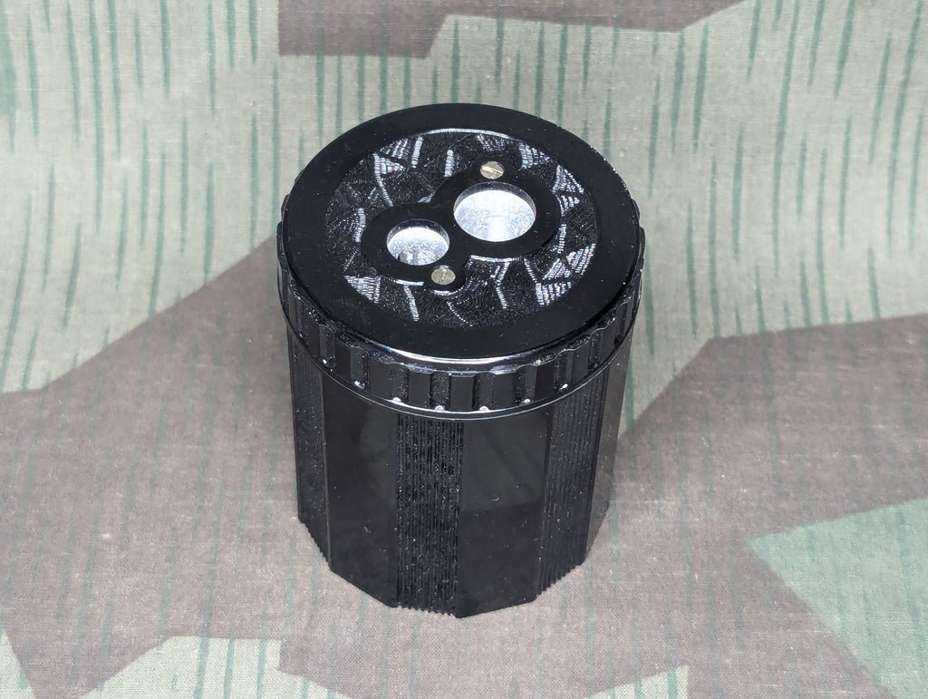 Reproduction, more like still in production, DUX double hole pencil sharpener. The company had been producing these, unchanged since the 1920's. The material is still Bakelite, but it is higher quality than most period items.