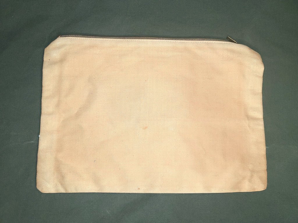 Vintage WWII WAC tan / khaki private purchase zipper bag. This came with a lot of WAC items. The inside lining looks to be somewhat waterproof, perhaps this was for use as a toiletry bag? Metal 'Streamline' brand zipper. There are some pen marks inside. General wear and some small scattered stains. Still a good, useable bag.