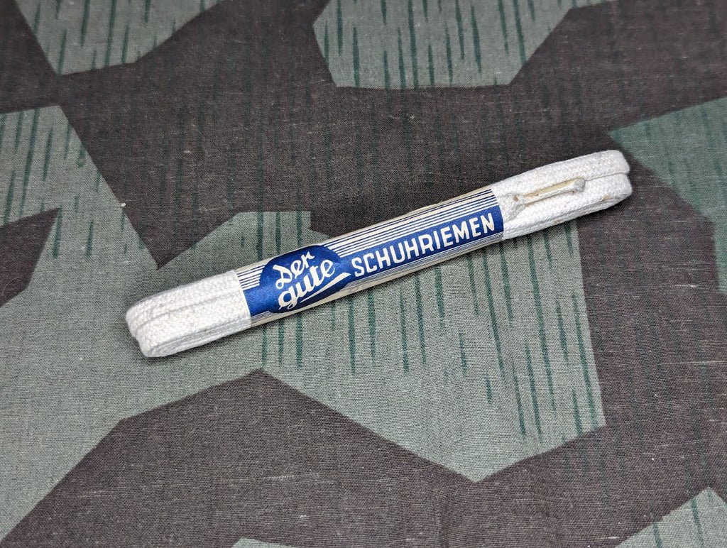 Original package of 90cm white shoelaces with the paper label. In decent condition with some staining. Price is for one pair.