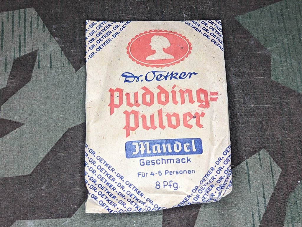 Original prewar full packet of Dr. Oetker's almond pudding powder. These are original deadstock in reasonably good condition - although the packets are a little leaky and there may be some very small holes in the paper package. Price is for one package, all are in similar condition.SOLD FOR COLLECTIBLE PURPOSES ONLY. DO NOT INGEST!We also have this item invanillaandstrawberryflavor.