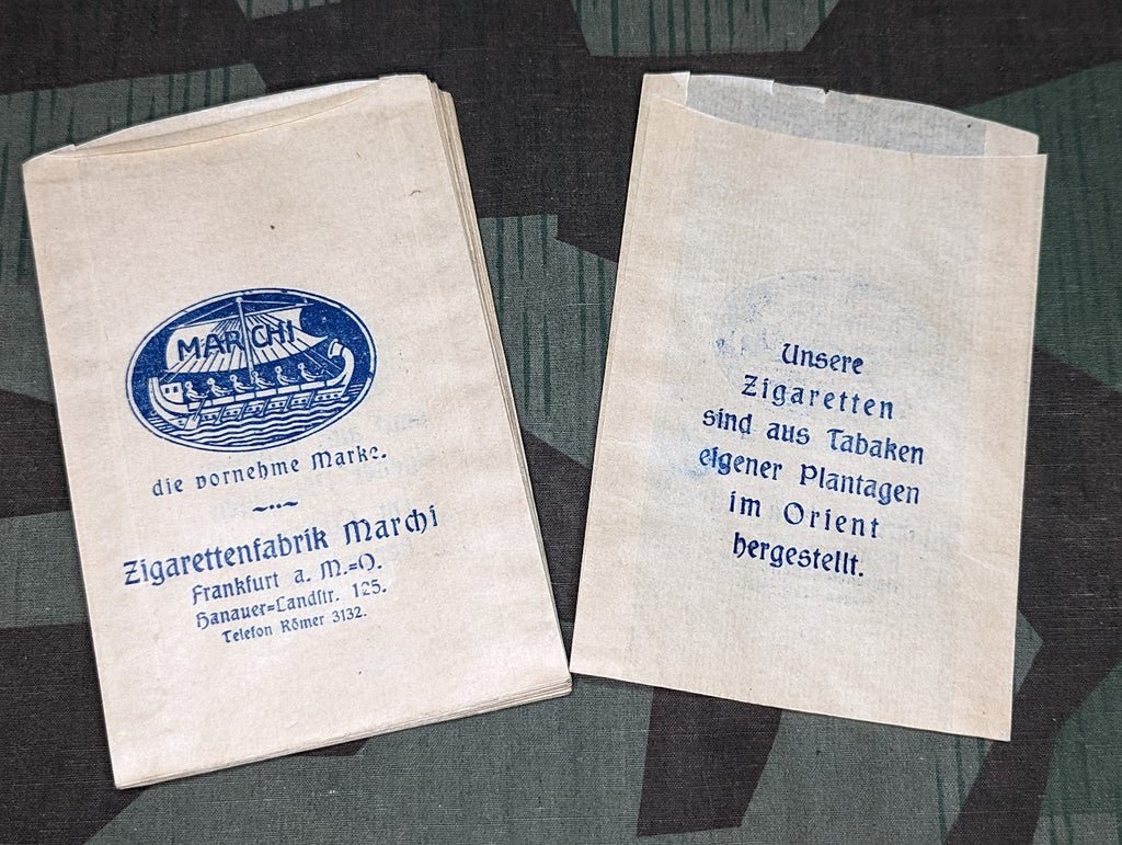 Period Marchi tobacco sales bag from a shop in Frankfurt. The details seem consistent with other pre war bags. The price is for 2 bags.