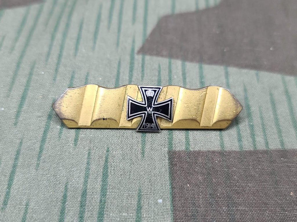 Vintage WWI brooch made from an artillery shell band. 1914 Iron Cross in the center. Overall good condition, but it does have some wear to the finish.