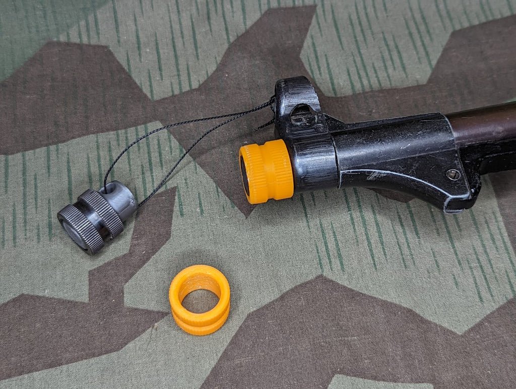 This orange plastic nut installs nicely in place of your original muzzle nut which can be handy for transporting your blank fire BFONG to and from events. Its a nice little touch which helps to avoid at least some awkward questions and may even help prevent you becoming embroiled in a chaotic scene should the wrong people lay eyes on your reenactment load out. The set includes 2 orange nuts and a little safe keeping fob for your original, which you can easily loop around your sight hood or trigger guard like attaching a price tag.These nuts are threaded to match accurately reproduced BFONGS with M15X1 threads which is the same as original MP40's. The nuts and fob are 3D printed and chased with a tap to ensure the threads are accurate.Do not fire your weapon with the orange nut attached, excessive heat may cause it to melt.