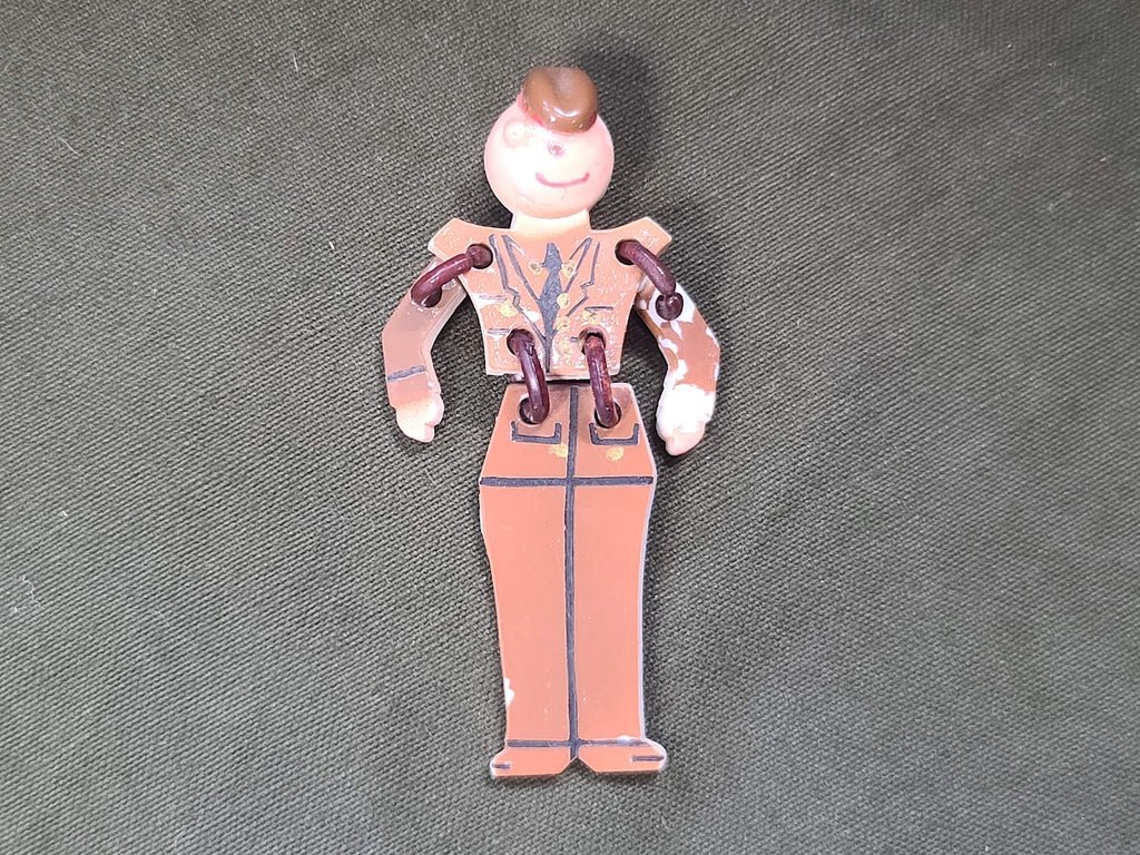 Vintage WWII articulated army soldier 'buddy' pin. Fun, unique homefront sweetheart pin. There is some wear to the paint - especially on the one arm. The pin is difficult to get into its closure.
