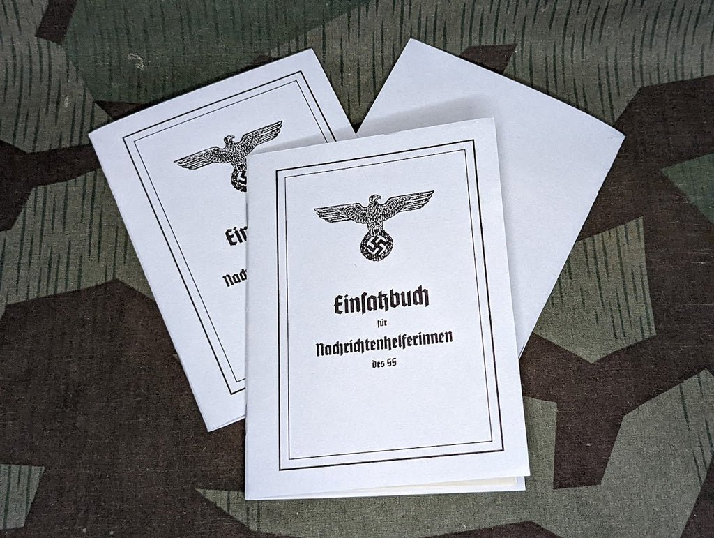 Very well made reproduction SS Nachrichtenhelferinnen Einsatzbuch, Soldbuch for female communications personnel. Made with proper cleaned and re-typeset artwork for a crisp result.We also have HeerNachrichtenhelferinnen Einsatzbuchhere.