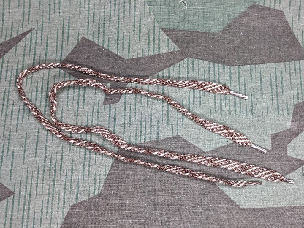 Old German brown pattern shoelaces. Postwar made but quite good for various civilian shoes. They have a celluloid tip. Price is for 1 pair. The measure roughly 40cm but they also stretch a fair amount beyond that.These are new old stock and we also have these laces inBlue,GreenandRed.