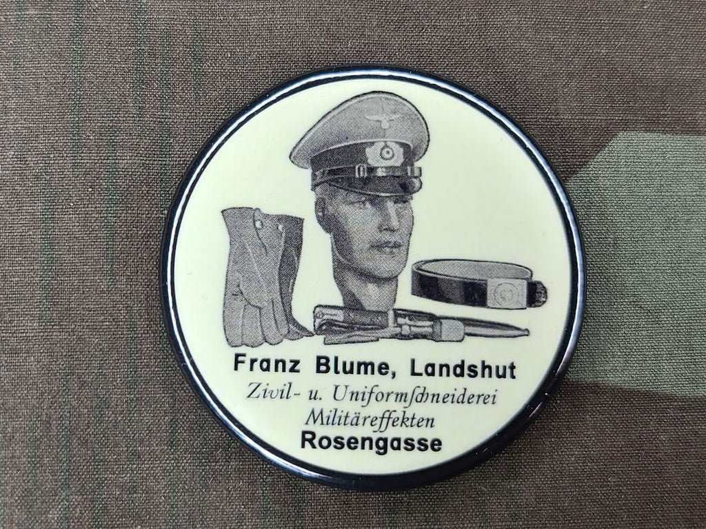 Reproduction advertising pocket mirror for a private purchase military and civilian uniform supplier. Copied from an original in my collection, see comparison photo. I was able to find a manufacturer that produced the same size mirror in the same style. I cleaned up the artwork and it all turned out very well. This is a project that's been sitting on the shelf a while. I'm glad to finally bring it to completion. Some mirrors may have smudges.