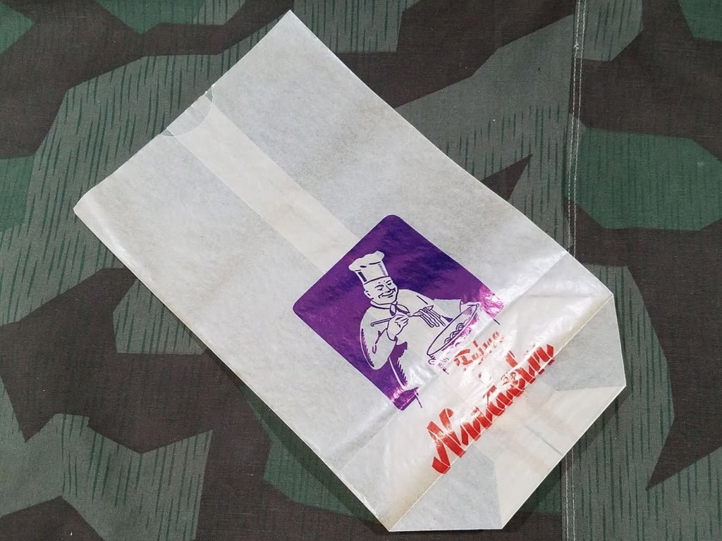 Original 'Feine Nudeln' bags for noodles. Good condition with light storage wear. Interesting rations item. Based on its size, I am guessing it would hold about 250 grams.Price is for five bags.