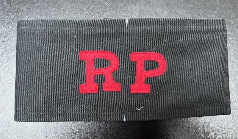 Affixed red RP letters on black band, 6 press studs to rear, Government stamp inside unissued