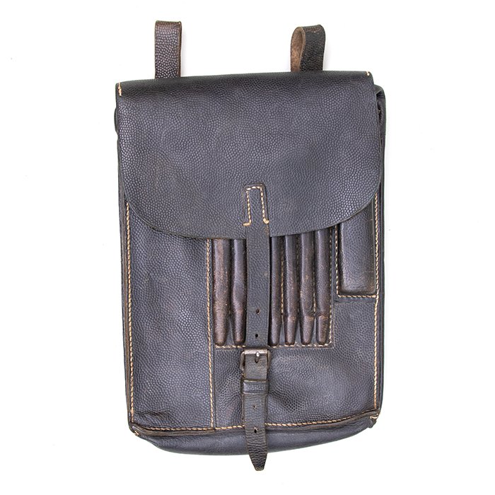Service used black leather map case with map, made of pebbled black leather, having white construction stitching, grey steel roller buckles, all straps and compartments intact and complete, includes large colored map of the western regions of the Soviet Union, USD $160 SOLD