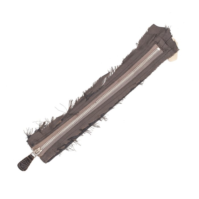 Luftwaffe flight suit zipper, with ribbed cotton blue cloth section of suit, fully functional, zipper head marked Elite, with brown leather pull tab, USD $30 SOLD