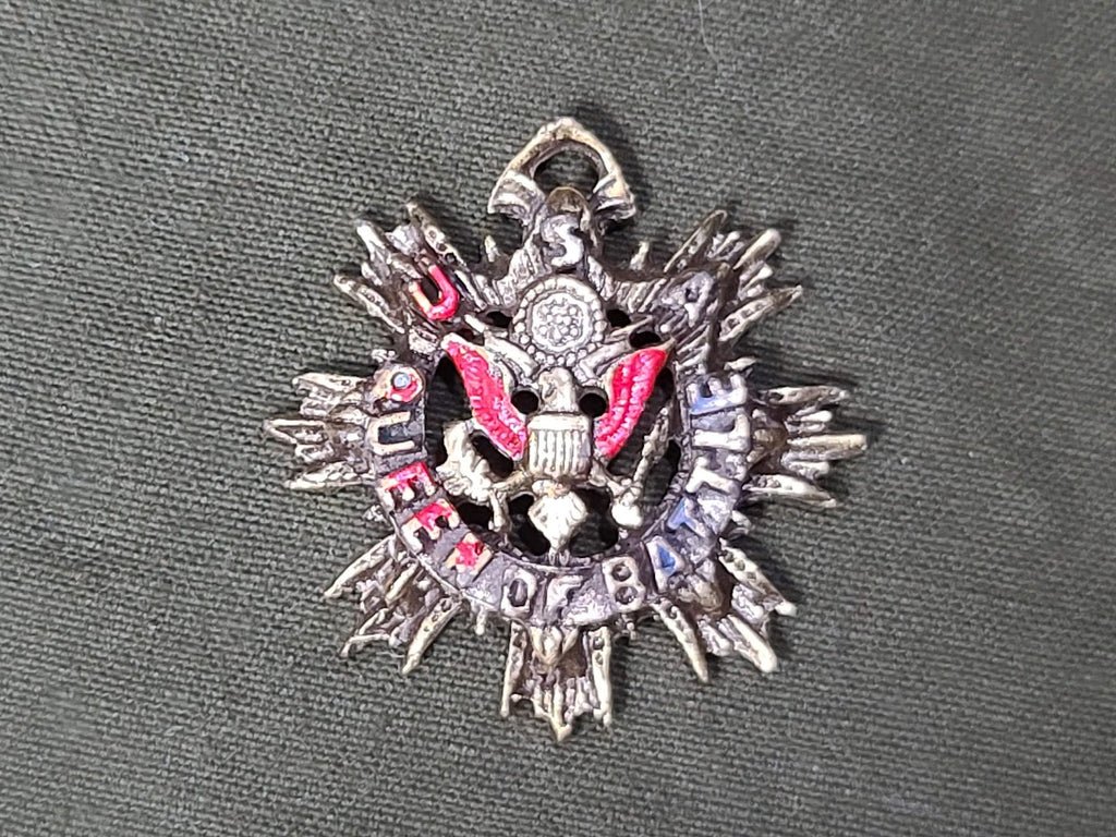 US Army 'Queen of Battle' charm. These are not original WWII era, but I am not sure when they where made; they may be vintage. Price is for one charm. The pendants are in good condition with some wear. There may be some small areas of worn paint or some discoloration on the back. Perfect to put on a necklace or have hanging from a pin.