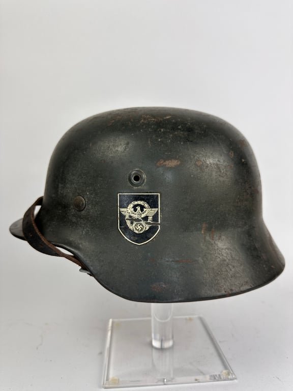 Polizei Combat Helmet. Nice used real seen combat helmet. Orginal chin strap. Size 58 Two names in it. Real nice orginal helmet.