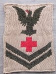 Original period manufacture. All cotton construction, left side, BeVo style embroidery, laundered, so removed from a uniform. Measures 2.75 x 3.75 inches