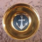 Japanese WWII Showa Era Imperial Navy Sake Cup, Blue/white Exterior, Kutani Porcelain, Anchor