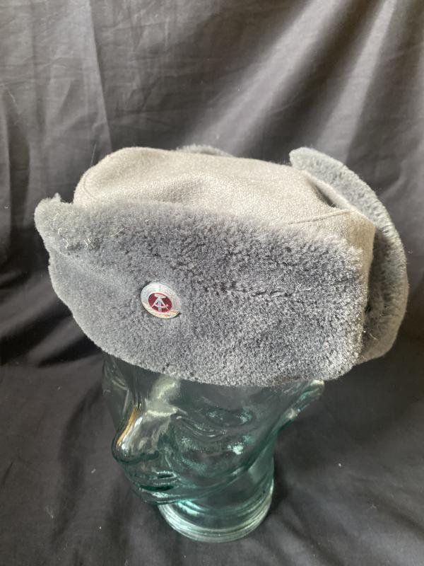 This is a a East German NVA Winter Hat in a size 58 with its Badge at the front.
