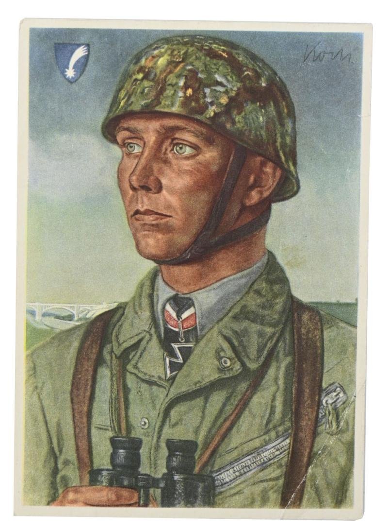 In a nice condition a German 'Willrich' period picture-postcard with a very nice drawing of Major Koch,Fallschirmjager, in overall very nice condition.