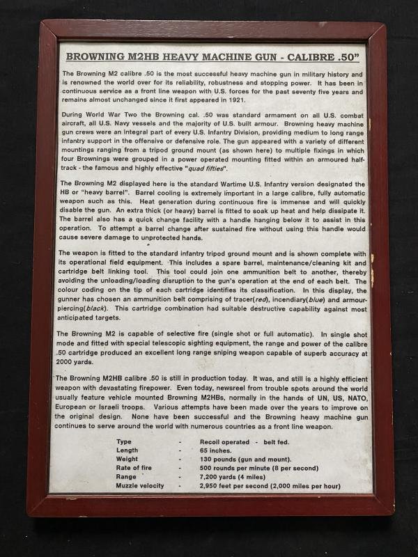 This is a Display Board with information about the WW2 U.S. .50Cal Heavy Machine Gun, Approx. 31 x 44cm.
