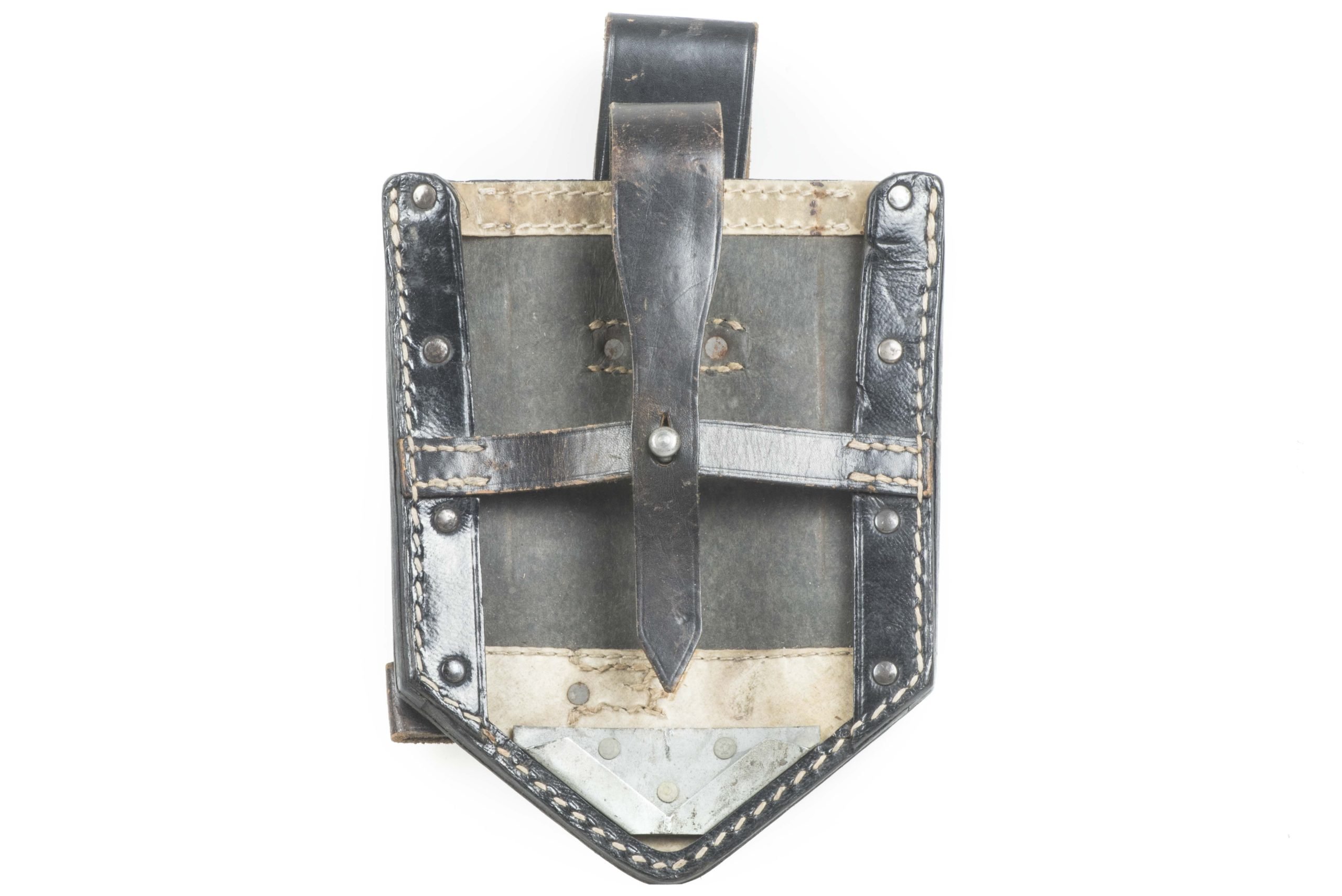 Textbook second pattern folding E-tool carrier manufactured out of Pressstoff in excellent, most likely unissued condition. The carrier is nicely marked jhg 42 which indicates production byGustav Genschow u. Co., AG, Lederwarenfabriken.Excellent example which would be impossible to upgrade!