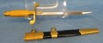 Original period manufacture. A very clean example near new condition with a makers mark on the blade ricasso. Nice gilded brass fittings with a black leather covered scabbard body. Near new condition overall.