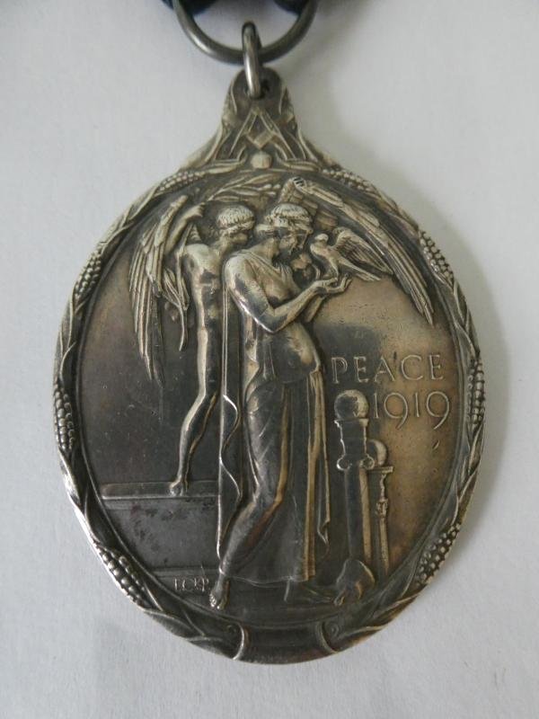 Masonic Peace Medal, 1919To commemorate the signing of The Versailles Peace Treaty in 1919.By J E Gaunt London, struck in silver.Designed by Edward Carter Preston.Medal in good order on original Gaunt pin for wearing