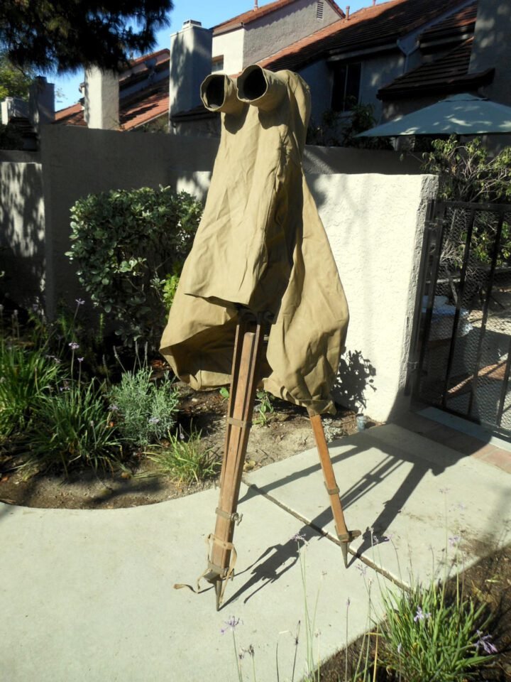 WW2 Imperial Japanese Army โ 15ร80 BIG EYE BATTERY COMMANDER OPTICS, BOX, TRIPOD, AND TAN CAMOUFLAGED COVER!