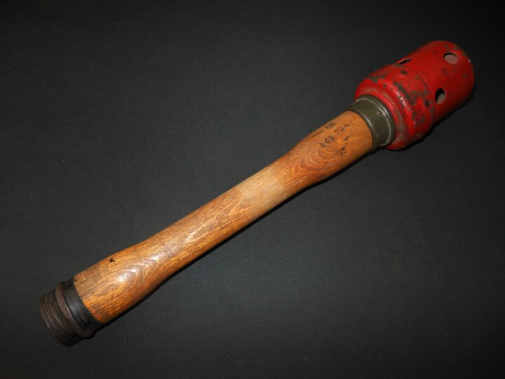 You are bidding on a SUPERB used example of a WW2 German Luftwaffe / Wehrmacht Übungs-Stielhandgranate 24 'Potato Masher' Grenade!Made of wood, and steel, this item is a FANTASTIC example!Some marks and wear, but it retains much of its original paint and finish! The markings on the handle are AMAZING and clearly legible. Appears this started out as a smoke grenade (due to the faded/removed white stripe on the handle), and was then converted to a training grenade during the war. Handle is dated 1941, while the head is dated 1944. Overall a VERY NICE example, PERFECT item for any collection or display!
