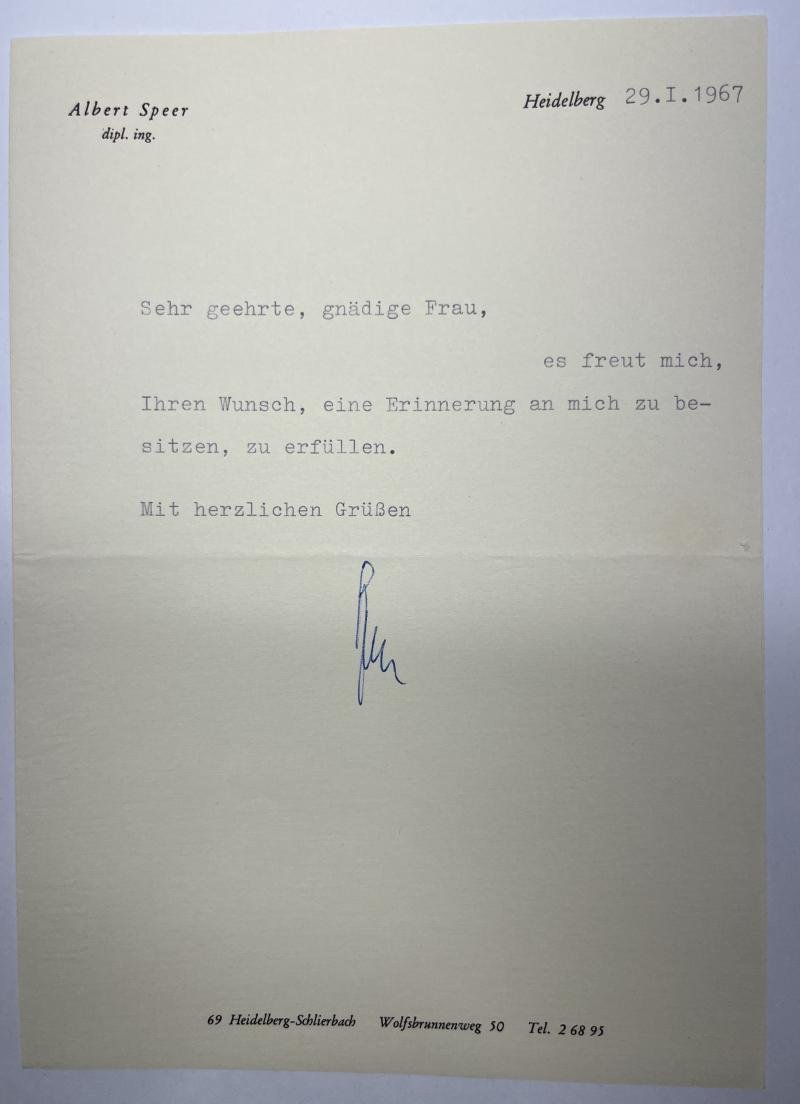 Albert Speer letter - 1967