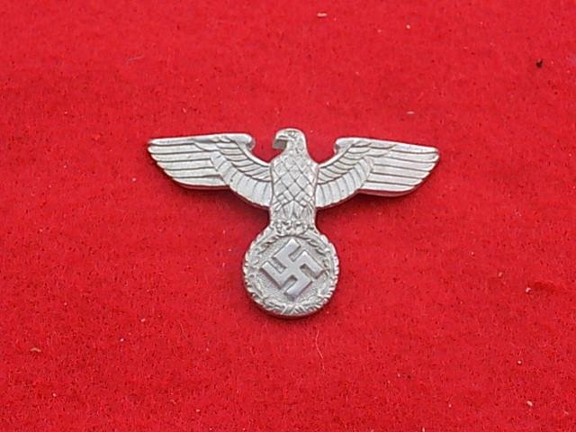 WW11 German Army Officers - Cap Eagle, aluminium with prong fittings to rear, approx 55mm x 36mm, good condition