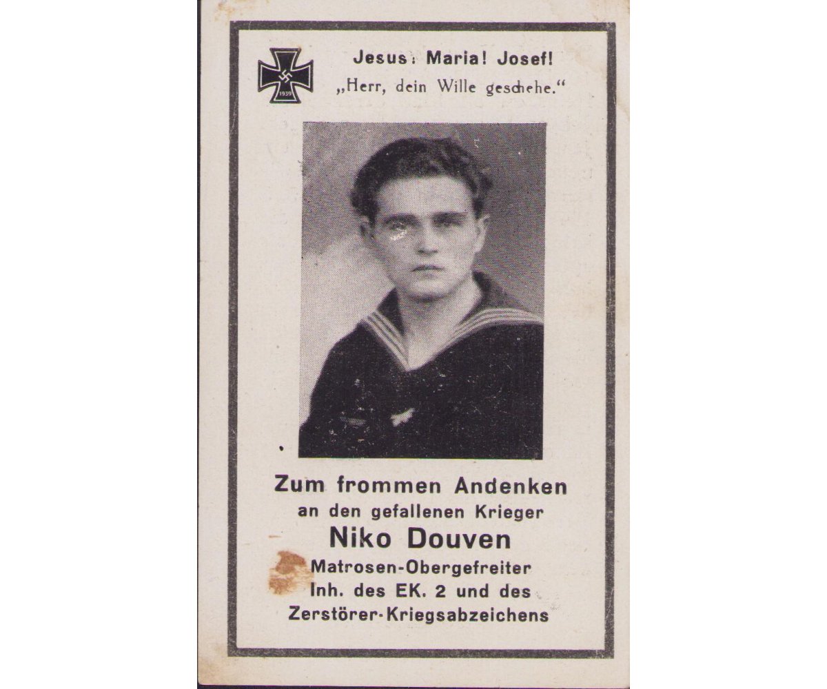 Death notice of Nikolaus Douven who died on the 15th of June 1944 in the area of Le Havre, France.