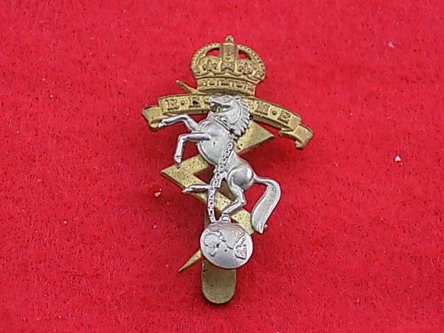 .Cap Badge - R E M E with Kings Crown, made of brass & white metal with slider fitting to rear, named Buttons Ltd B'ham, good condition