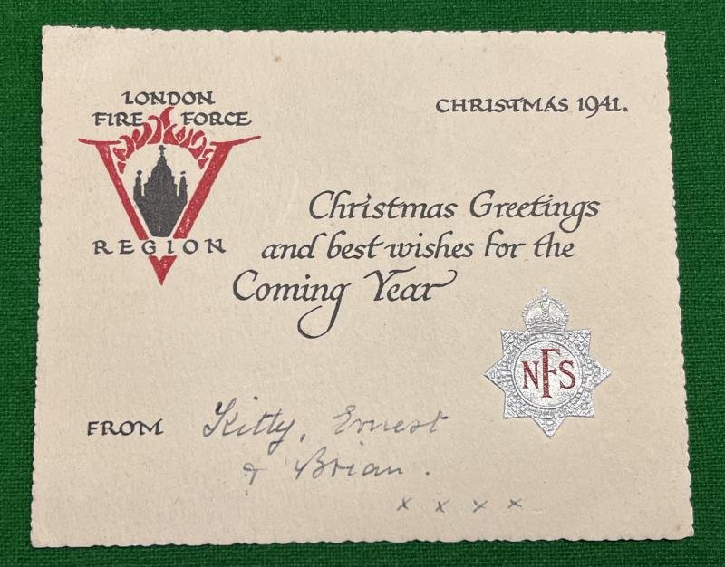 Used 1941 Christmas Card for the London Fire Force Region with embossed NFS badge. In good, clean condition. condition.POSTFREE within UK